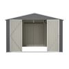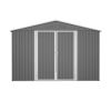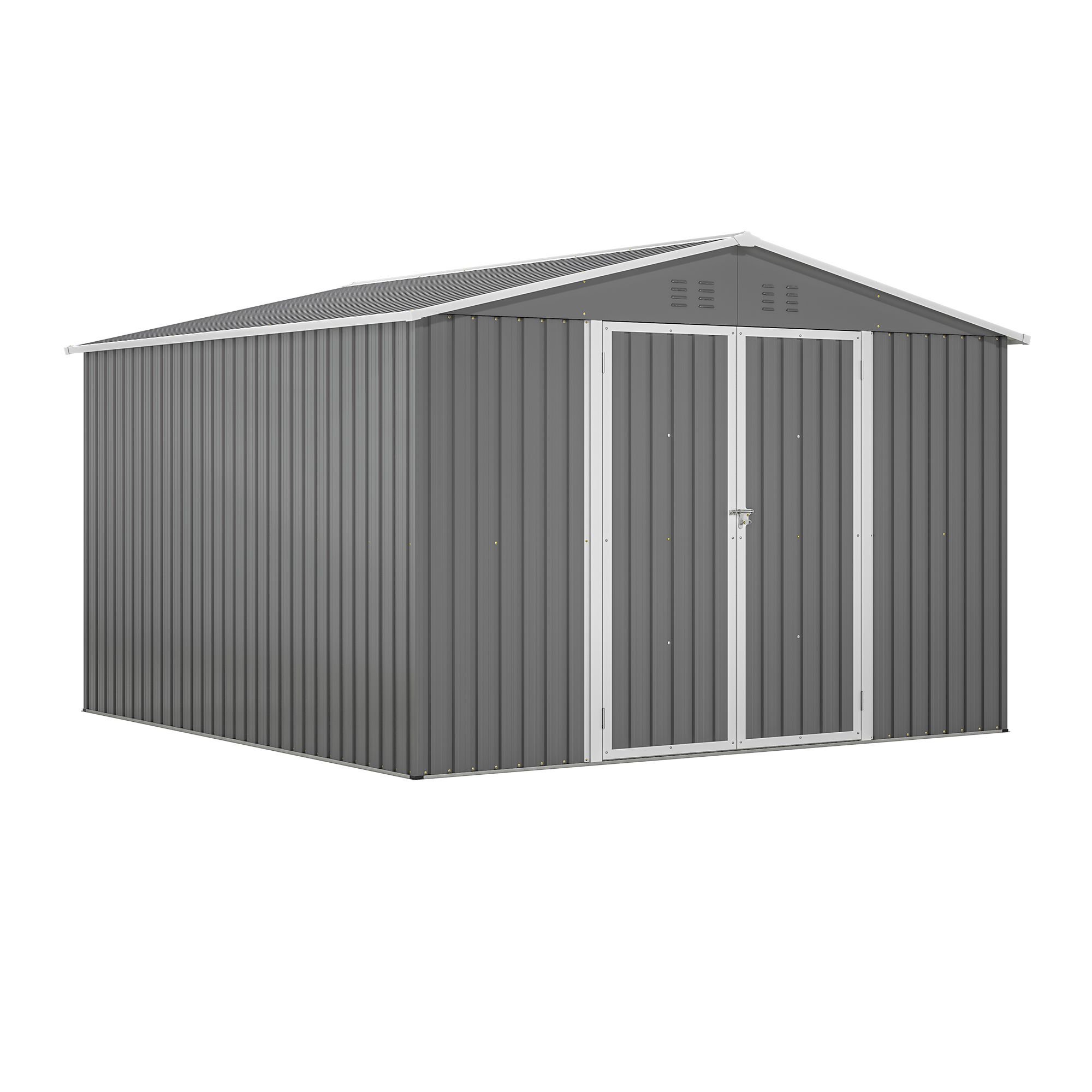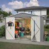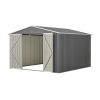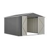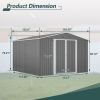 [Outdoor Storage Shed]: This 10X10 FT garden storage shed is perfect for maximizing storage in a smaller space. Dimensions are 118.11''(L) x 122.6''(W) x 79.21''(H). Door dimensions are 49.72"(W) x 64.25"(H). Spacious storage capacity, not only can be used as a storage room to store tools, but also as a garbage collection room to keep the backyard clean and tidy.