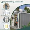[Easy Assembly]: The shed assembles right out of the box, with no cutting or drilling required. All parts of the metal outdoor storage shed are pre-cut, pre-drilled and labeled with marking numbers. It is recommended to assemble on a level floor and not tighten all screws during assembly until the entire project is complete.