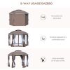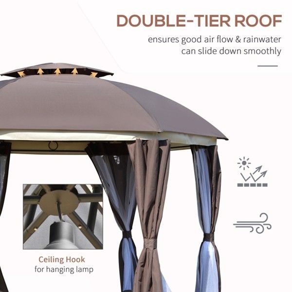 144x144 Inch Round Outdoor Gazebo, Patio Dome Gazebo Canopy Shelter with Double Roof, Netting Sidewalls and Curtains, Zippered Doors AS