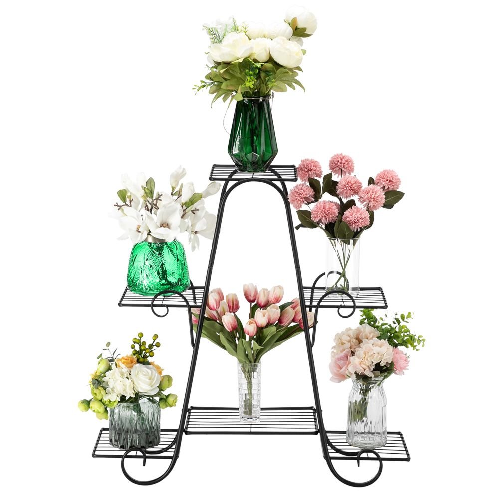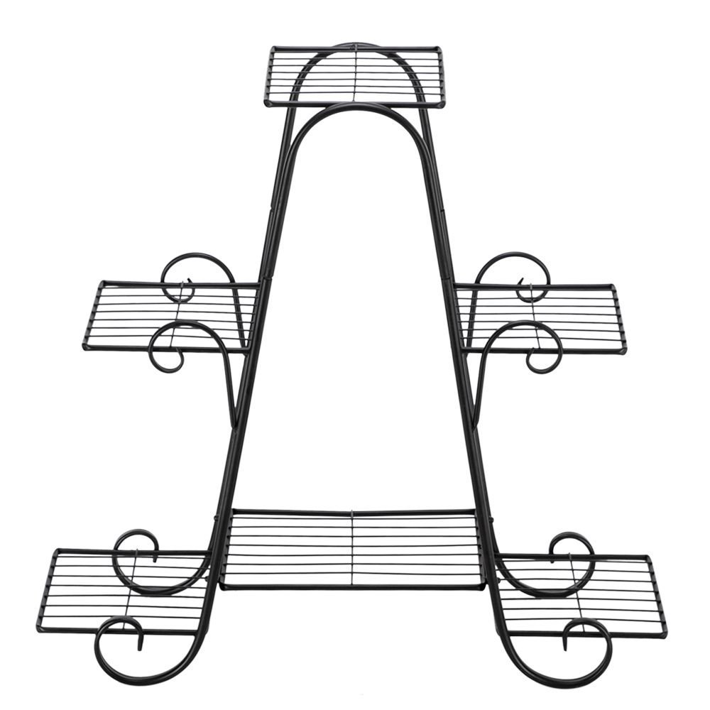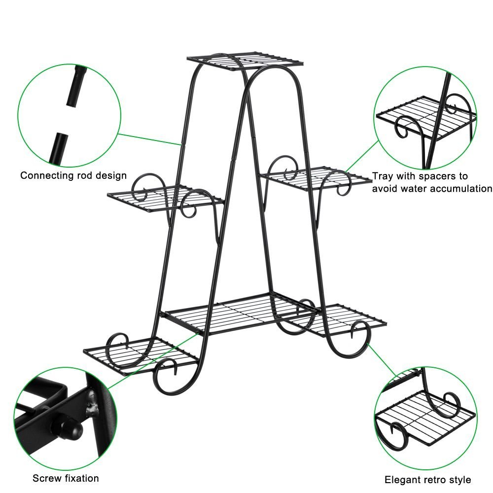 1. Garden iron flower pots holder shelf can holds 7 planters, it decorates your house, garden, balconies, hallway, patios, decks, except a plant stand, it also can be used as book shelf, storage shelf.