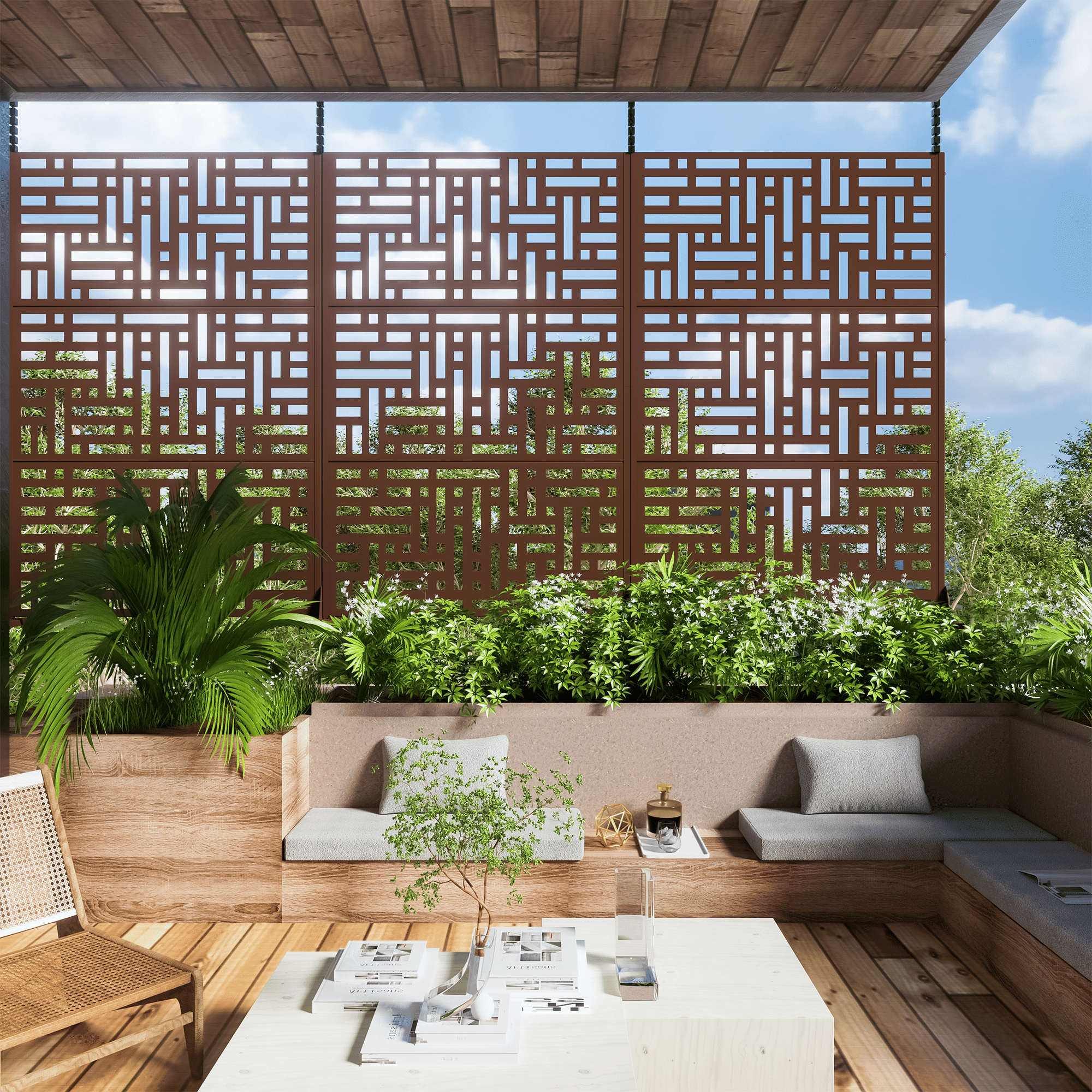 Elevate your outdoor space with the Metal Privacy Screen. Its modern design adds a touch of style to your deck, patio, or balcony while providing a functional privacy solution.