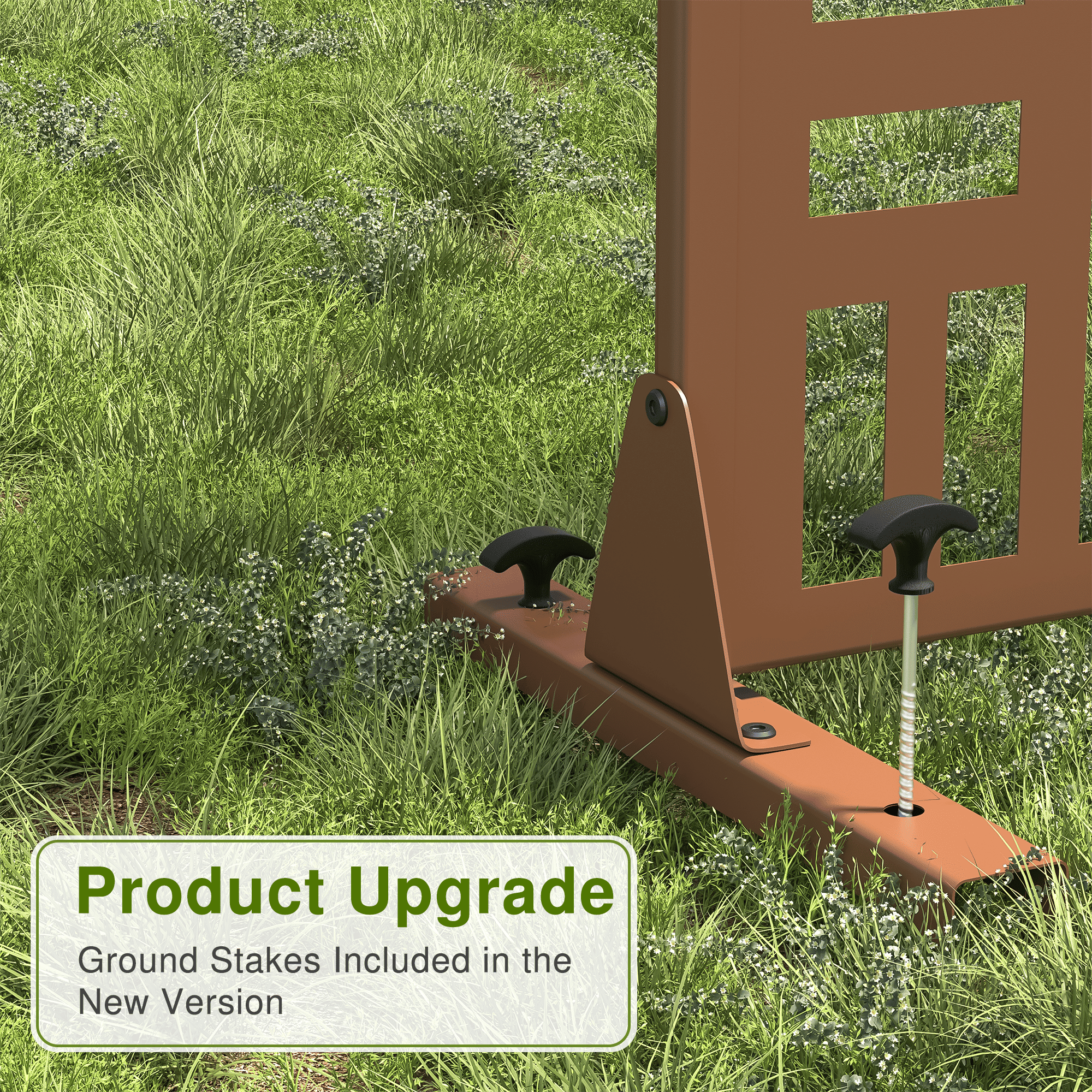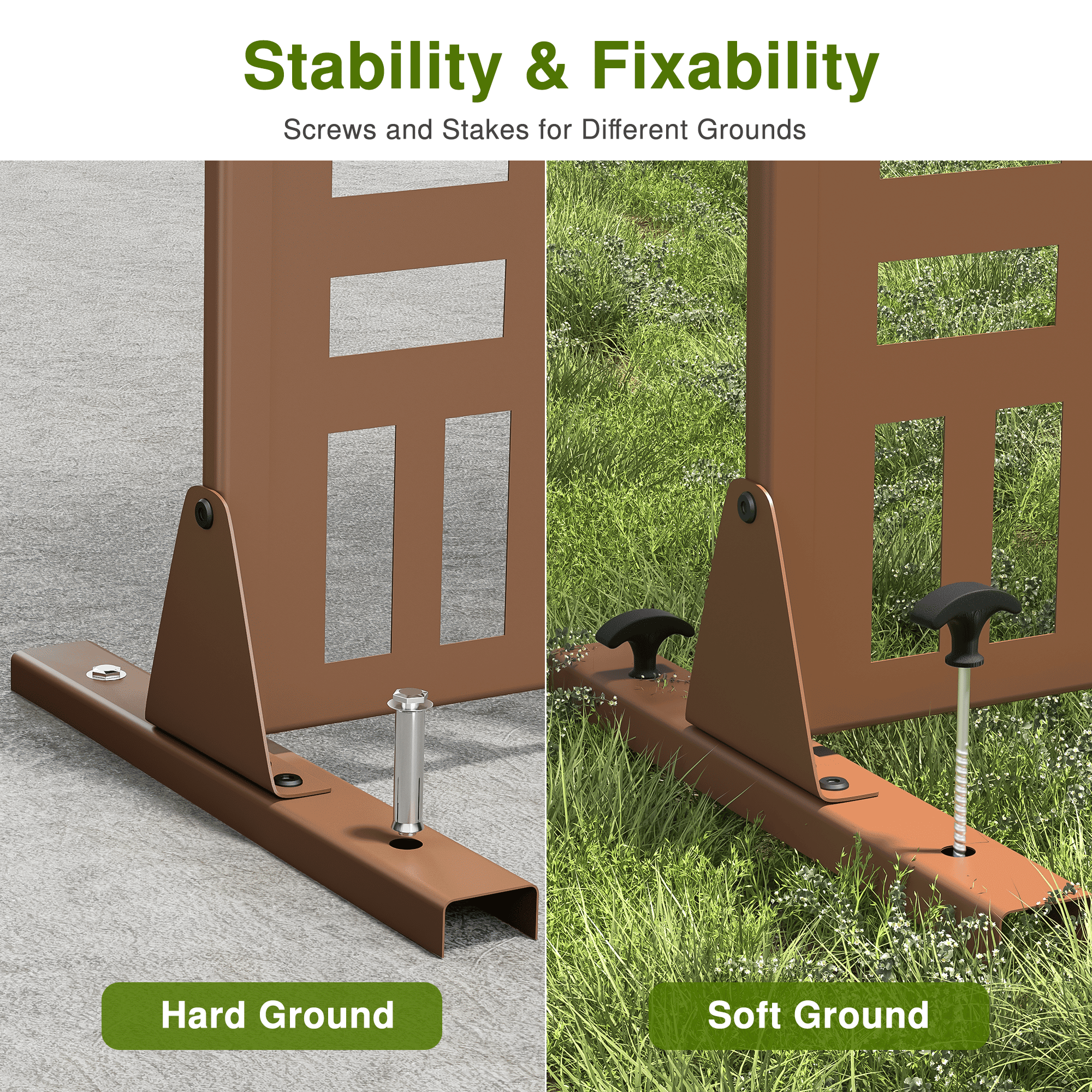 The metal privacy screen boasts a robust construction crafted from high-quality galvanized steel. Designed to endure the rigors of outdoor elements, its sturdy build guarantees prolonged durability.