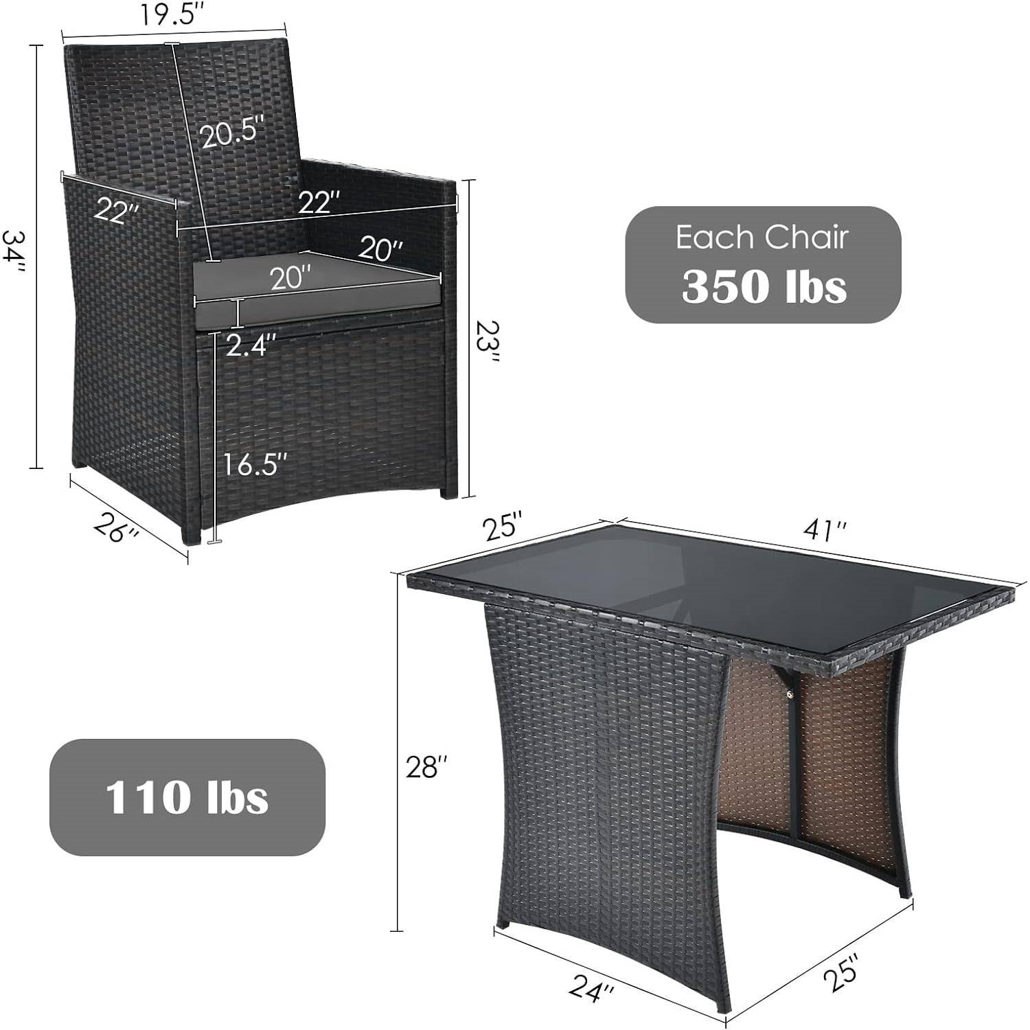 • Selected Materials: Made of rustproof steel frame wrapped with weather-resistant PE rattan, this patio bistro set allows you to leave it outside. Meanwhile, tempered glass is studier and safer than other common glasses. And, both table and chairs have non-slip foot pads for additional stability.
