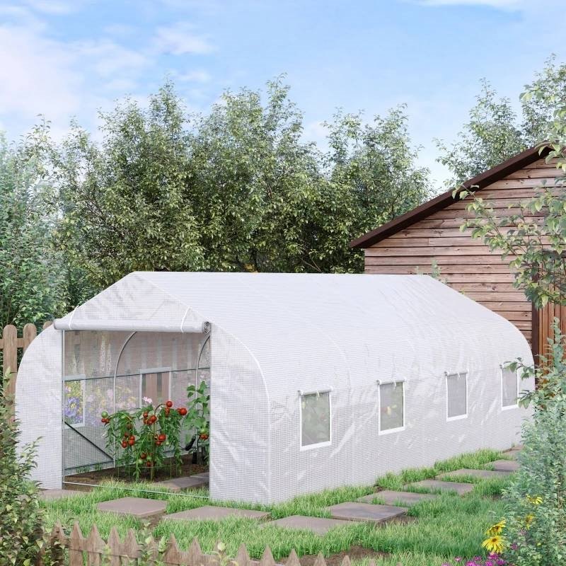 • 19.5 Ft x 9.8 Ft Outdoor Greenhouse w/ White PE Cover and Heavy Duty Steel