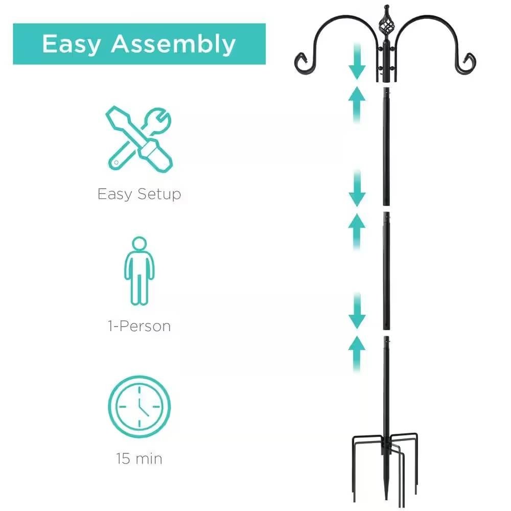 This Complete Bird Feeder Set with Black Metal Stand and Bird Feeders comes complete with four feeders: a wire feeder, peanut feeder, tube feeder, and suet feeder, as well as a water bowl and additional food tray. The durable hooks are excellent hangers for feeders as well as wind chimes, birdhouses, and other decor. Threaded tubes come together while a set of wingnuts secure additional hooks or feeder stations before staking the pole into the ground. Made entirely of durable steel, this feeding station features a long anchor to withstand the wind and allow feathery friends to stop by for years to come. At 89 inches tall, this feeder station will help attract dozens of birds and improve your gardening experience.