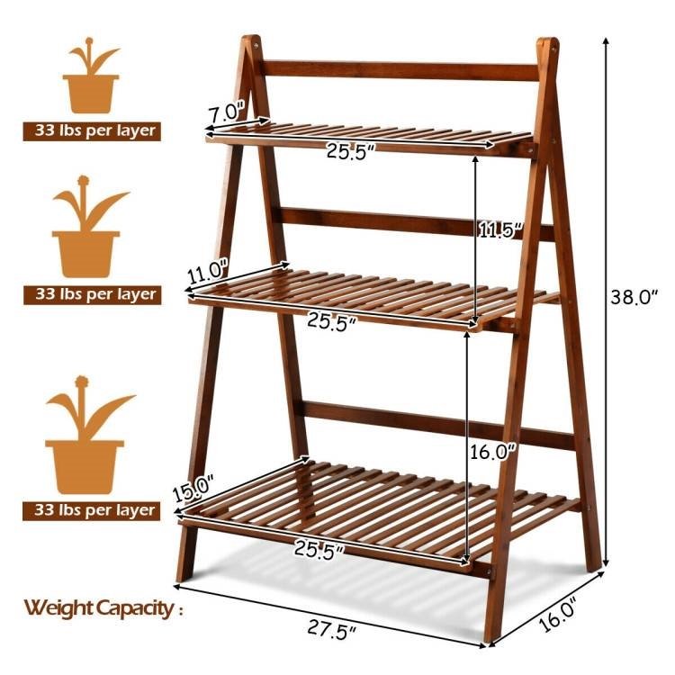 Plant placement is effortless with this FarmHome Indoor/Outdoor 3 Tier Folding Plant Stand Planter Shelves! This stand is made of natural bamboo that is eco-friendly. 3 tiers provide enough space to store and display potted plants and other decorative items. The trapezoidal design and triangular structure enhance the stability of the plant stand, and it will not shake even in bad weather. You can also use it as a storage shelf, display stand and bathroom organizer rack to meet your different needs. With a foldable and portable design, you can easily move, carry and store it. The modern and stylish design is ideal for indoor and outdoor spaces. It can fully display your potted plants and keep them in order.