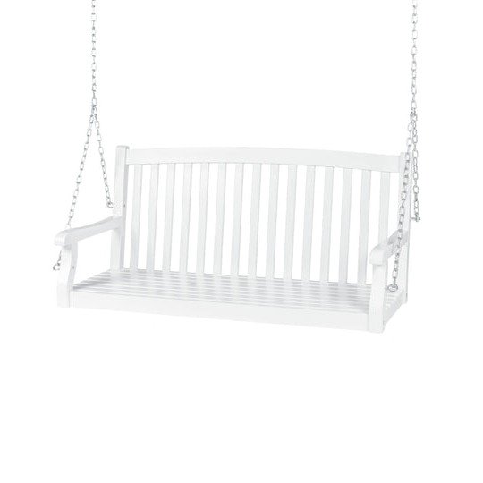 White Acacia Wooden Curved Back Hanging Porch Swing Bench with Mounting Chains White Acacia Wooden Curved Back Hanging Porch Swing Bench with Mounting Chains White Acacia Wooden Curved Back Hanging Porch Swing Bench with Mounting Chains
