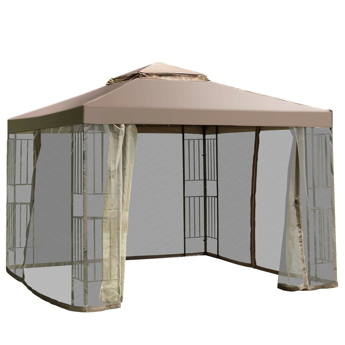 10 x 10 Ft Outdoor Patio Gazebo with Taupe Brown Canopy and Mesh Sidewalls 10 x 10 Ft Outdoor Patio Gazebo with Taupe Brown Canopy and Mesh Sidewalls 10 x 10 Ft Outdoor Patio Gazebo with Taupe Brown Canopy and Mesh Sidewalls 10 x 10 Ft Outdoor Patio Gazebo with Taupe Brown Canopy and Mesh Sidewalls