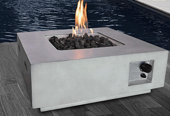 Santiago 30" Square Fire Pit with Protective Lid | Outdoor Furniture for Home; Patio and Garden (Concrete Finish; Size :- 30'' H x 30'' W x 11'' D)